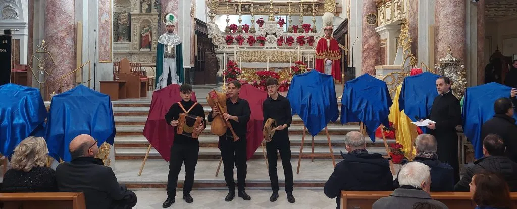 Originale iniziare questo momento con il suono della zampogna, della fisarmonica e del tamburello, trait d’union tra il Natale, in fase di conclusione, e la Bruna, con la processione dei pastori.