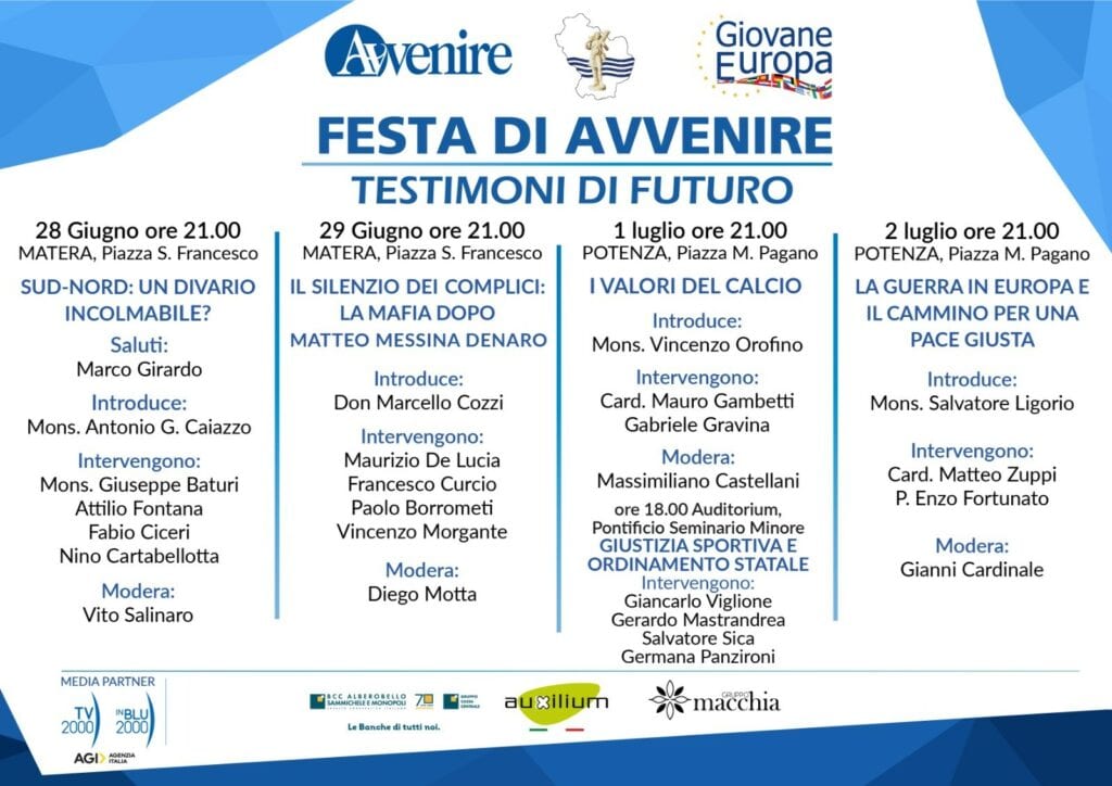 Sanità – con particolare riferimento ai problemi tipici della nostra terra e allo spinoso divario nord/sud Italia – e legalità i temi delle serate materane di oggi e domani, 28 e 29 giugno, in cui la “festa” si terrà sul sagrato di S. Francesco d’Assisi alle ore 21.