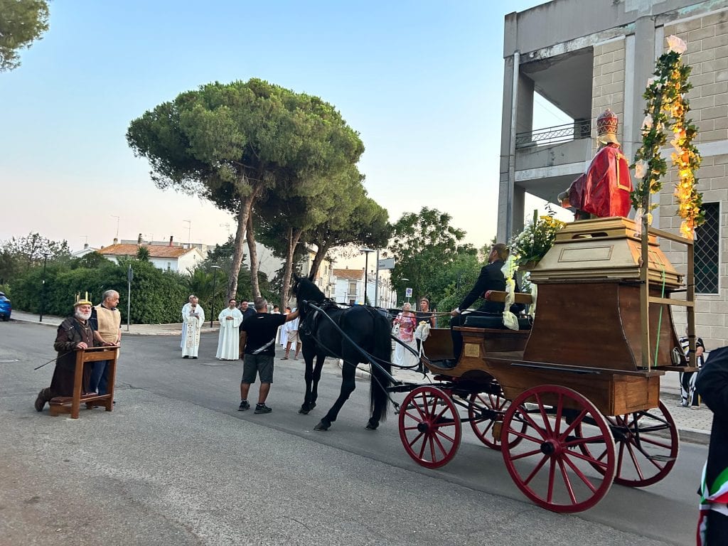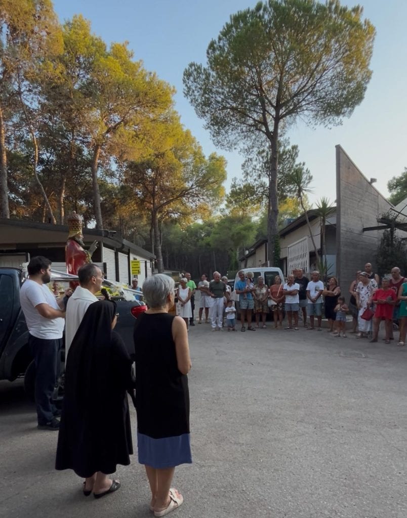 L’11 agosto la statua di San Leone, su un veicolo appositamente attrezzato, è stata portata, secondo l’usuale giro, per i campeggi e le strutture turistiche del comprensorio di Metaponto. Il pick-up con San Leone si è spostato dal Basento al Bradano del Lido fino a lambire quelle aree di pineta che sono state distrutte dall’incendio dei giorni scorsi. La preghiera, recitata nel corteo processionario di San Leone, si è elevata al cielo affinché gli episodi spiacevoli di quest’anno possano non più verificarsi anche auspicando che al più presto saranno realizzati gli apprestamenti tecnologici di sicurezza che sono in grado di allertare la Protezione Civile sin dall’innesco di eventuali incendi nuovi o al verificarsi di altre situazioni emergenziali che possano mettere in pericolo i luoghi dove i turisti in visita a Metaponto vengono a trascorrere un periodo di serenità e spensieratezza. Alla fine del giro il corteo con don Angelo e la sequela di parrocchiani si sono recati alla Chiesetta dell’Assunta nella pineta per la celebrazione della Santa Messa.