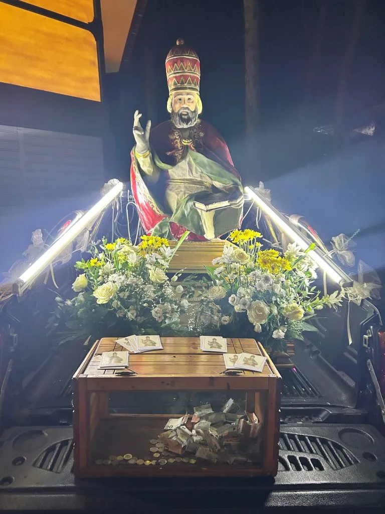 Alla conclusione della processione nel Borgo, don Angelo ha impartito la benedizione ai fedeli presenti annunciando che poco dopo avrebbero portato la statua di San Leone col Pick-up al Lido di Metaponto per fare un giro sul lungomare mettendo sotto la protezione del santo i turisti e gli operaori turistici presenti.