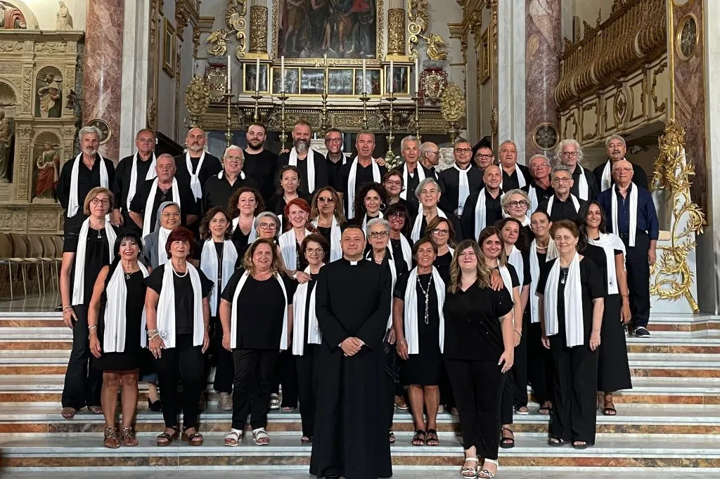 don Vito Burdo con i cantori del coro diocesano “Magnum Signum”