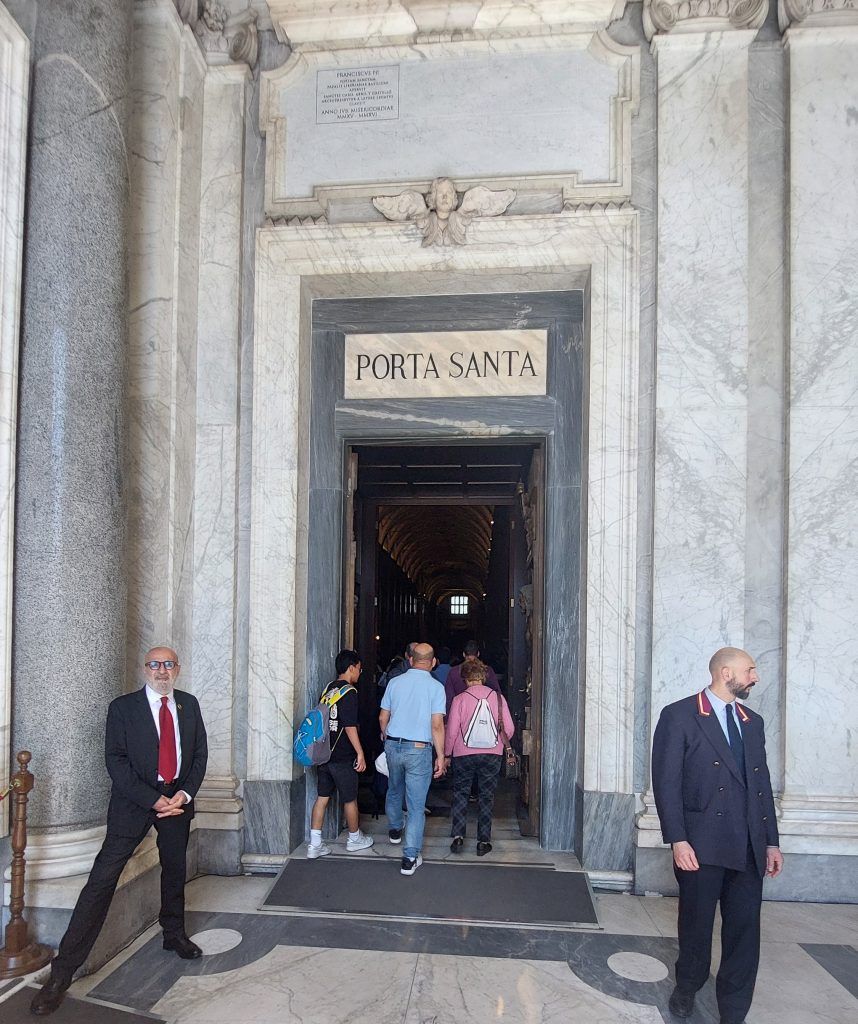 Qui il primo momento del pellegrinaggio. Questa la prima Porta Santa che abbiamo varcato, applicando l’indulgenza a noi o a qualcuno dei nostri cari.