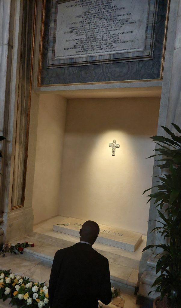 Una grande emozione, a proposito, la sosta, seppur contingentata nel tempo dagli steward che invitavano a procedere, a pochi passi dalla lapide di Francesco. E abbiamo scoperto che in S. Maria Maggiore sono sepolti anche altri papi, Paolo V Borghese e Pio V, proprio nella Cappella della “Salus Populi”, nonché Gian Lorenzo Bernini che aveva la bottega lì vicino.