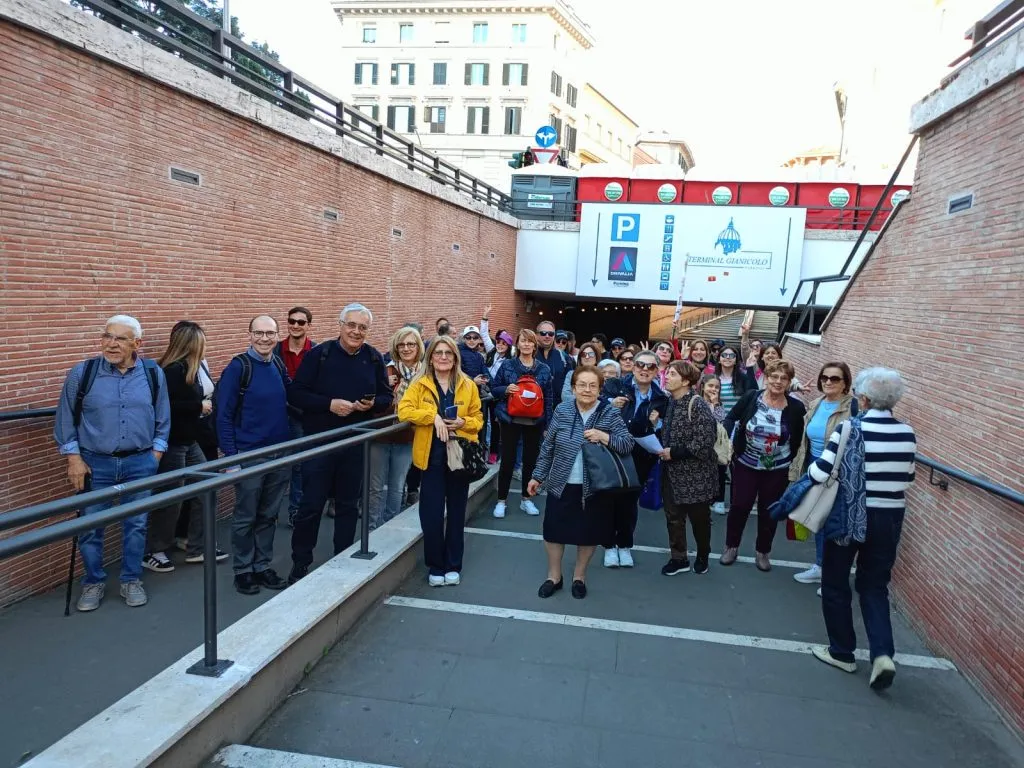Ultima tappa un po’ per tutti, la Scala Santa, a due passi da San Giovanni, sulla quale, secondo la tradizione, salì Gesù per raggiungere l’aula dove ha subìto l’interrogatorio di Pilato prima della crocifissione e, come gli studi hanno verificato, è costituita da materiali provenienti dalla Palestina e risalenti a quei tempi. Alcuni pellegrini sono saliti devotamente in ginocchio, come la tradizione suggerisce (ma è dura!), altri – per limiti di tempo o età avanzata, ma pur sempre con tanta devozione – in piedi, ma tutti hanno ritenuto questa tappa un’opportunità a cui non potersi sottrarre.
