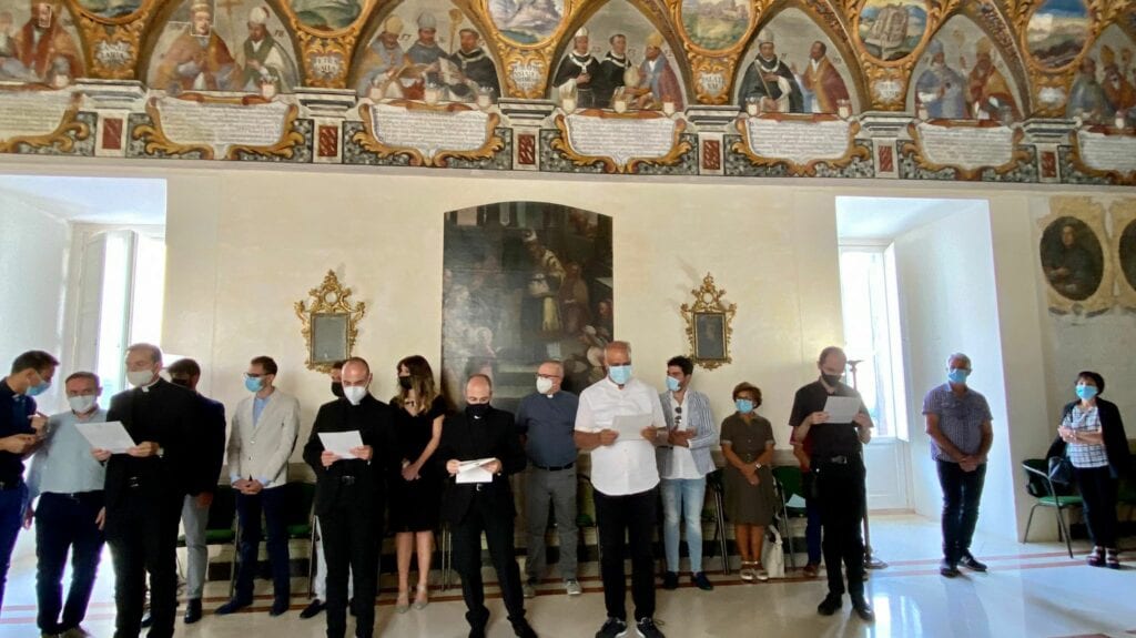 Stamattina 8 settembre 2021 hanno prestato giuramento di fronte all’Arcivescovo di Matera-Irsina Mons. Antonio Giuseppe Caiazzo i cinque sacerdoti che lo scorso quindici agosto hanno ricevuto la nomina a parroco in altrettante sedi della diocesi, precisamente a Matera, Irsina, Montescaglioso, Miglionico e Scanzano J. ed alcuni direttori di uffici diocesani. Appena dopo la recita dell’Angelus, nel Salone degli Stemmi in Episcopio, i nominati hanno fatto professione di fede, prestato giuramento di fedeltà e osservanza del segreto nel caso dei nuovi parroci.