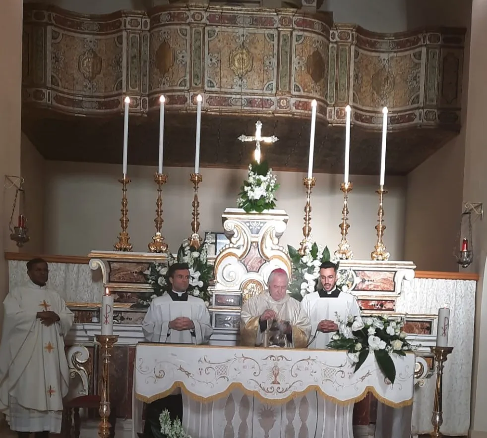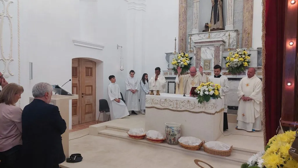 Quanta vita lunedì pomeriggio sul Colle di Sant’Antuono! Le auto in movimento alla ricerca di un posteggio, i due bus giunti da Grottole per chi non poteva salire a piedi, capannelli di giovani in festa: grottolesi, ferrandinesi, salandresi… e anche dei vicini paesi della Diocesi di Tricarico (Grassano, Campomaggiore…). E proprio don Nicola Urgo, vicario generale di Tricarico, ha presieduto la celebrazione eucaristica del pomeriggio. Una chiesa gremitissima, un’assemblea partecipe, una liturgia solenne animata, tra l’altro, dalla presenza dei due seminaristi grottolesi: Nunzio Ciliero, come cerimoniere, e Domenico Pepe, che guidava il coro e suonava la pianola.