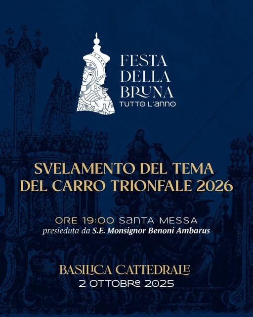 Il 2 ottobre prossimo, nell'ambito della Festa della Bruna tutto l'anno, dopo la celebrazione della Santa Messa alle ore 19 con mons. Ambarus, sarà svelato il tema del carro 2026.