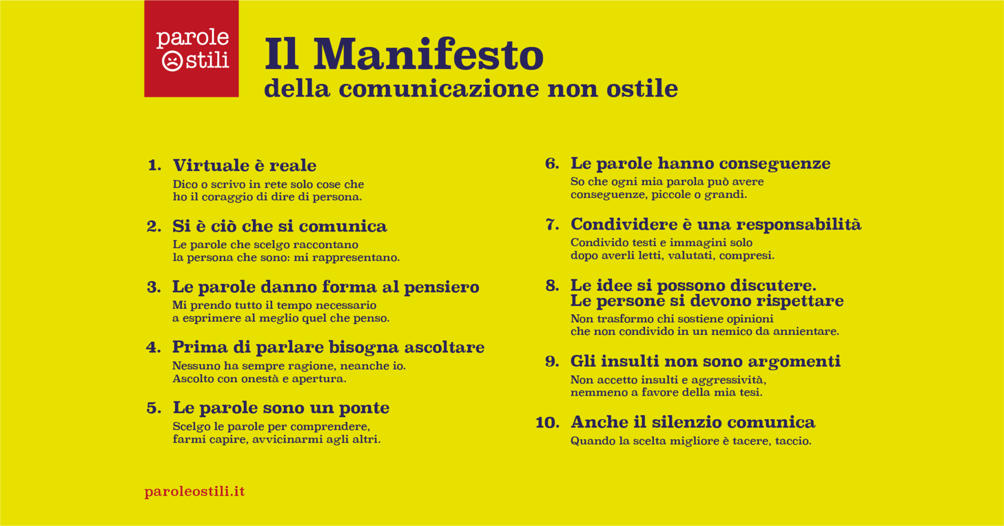 “Crediamo in un dialogo rispettoso e civile – aggiunge D’Oppido – che scelga di non prendere la deriva dell’insulto e dell’aggressività. Questa sottoscrizione è un impegno formale ma anche concreto: ci impegniamo, infatti a promuovere e a supportare iniziative di formazione e di sensibilizzazione a favore della comunicazione non violenta, affinché la Rete diventi un luogo più accogliente e sicuro per tutti”.