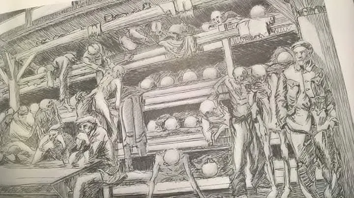 Disegno di Pierre Mania e August Favier è tratto dal volume “Buchenwald 1943 -1945”, Cierre-Aned, 2016.