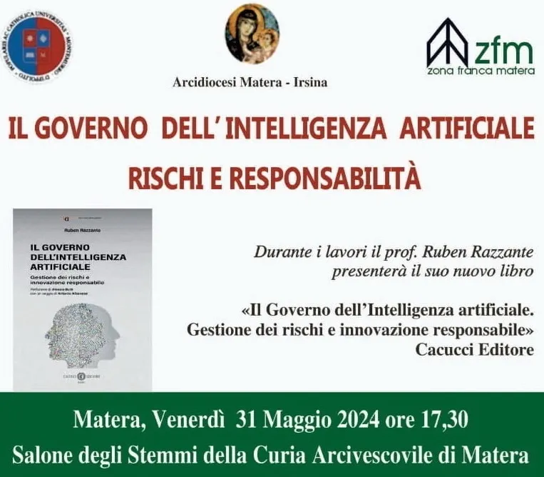 Nel corso della serata sarà presentato il libro di Ruben Razzante “Il governo dell’intelligenza artificiale- gestione dei rischi ed innovazione responsabile” nel quale l’autore esplora le opportunità ed i rischi legati all’integrazione dell’Intelligenza Artificiale (AI) in settori chiave della società contemporanea, quali la pubblica amministrazione, la sanità, l’istruzione, il giornalismo e l’informazione con particolare attenzione alla tutela dei diritti (privacy, reputazione, uguaglianza e parità di accesso) e alle questioni etiche che ne derivano.