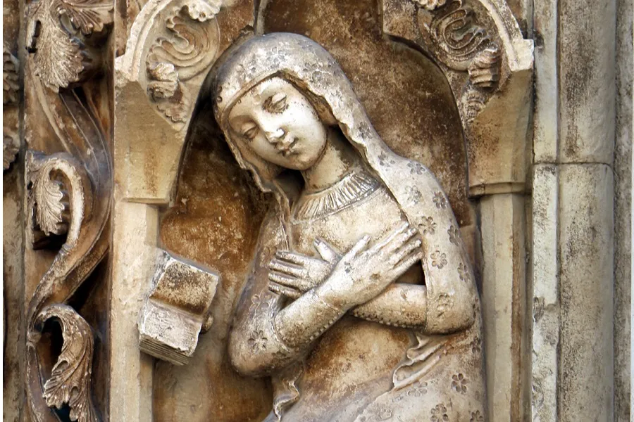 Secondo quello che leggiamo nelle Confessioni, dunque, Sant’Agostino comprende che l’atto della lettura silenziosa, come la vedeva praticata in Sant’Ambrogio, rivela il mondo interiore di un lettore che, con un libro tra le mani, cerca di mettersi in relazione con Dio. C’è un bassorilievo molto bello sulla facciata della Cattedrale di Altamura che raffigura la Madonna mentre riceve l’annuncio dell’Angelo. Si vede Maria che ha gli occhi fissi su un libro mentre ascolta le parole dell’Angelo. Perché? Forse perché, come un libro, «custodiva tutte queste cose».