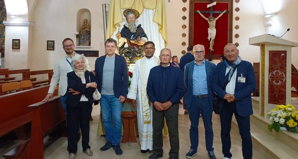 La redazione del giornale della Diocesi di Matera-Irsina in trasferta a Grottole per raccontare la festa di Sant’Antonio Abate (edizione 2024). In foto il parroco don Savari Susai con il Comitato Feste di Grottole e il redattore Giuseppe Longo.