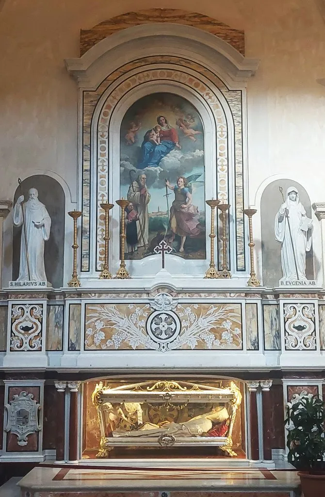 Ma come ci ricordano le due statue in marmo di Carrara che il vescovo benedettino mons. Anselmo F. Pecci fece realizzare nel 1939, in occasione dell’ottavo centenario della morte di San Giovanni, tra i santi materani si annoverano anche Ilario ed Eugenia, anch’essi monaci benedettini, di circa un secolo precedenti a san Giovanni Scalcione.