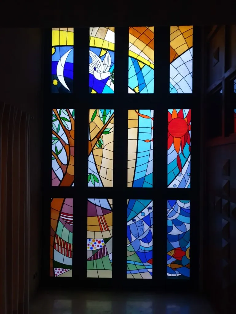 Da ultimo, in questi giorni, alla sinistra dell’assemblea: Le beatitudini e la Trasfigurazione, mentre, la cappella dedicata a san Giovanni Bosco è corredata dalla vetrata raffigurante la Creazione, ispirata alla Laudato si’ di papa Francesco.
