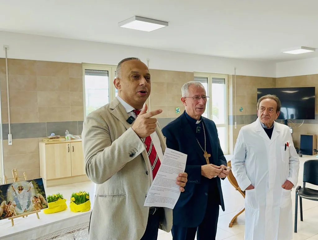 Ad accogliere l’Arcivescovo al suo arrivo nella struttura, situata nell’area servizi della zona industriale, c’erano il direttore operativo del Centro Luciano Ladisi, il direttore sanitario dott. Giuseppe Calicchio, il cappellano don Biagio Plasmati ed il parroco del Borgo La Martella don Gianpaolo Grieco.
