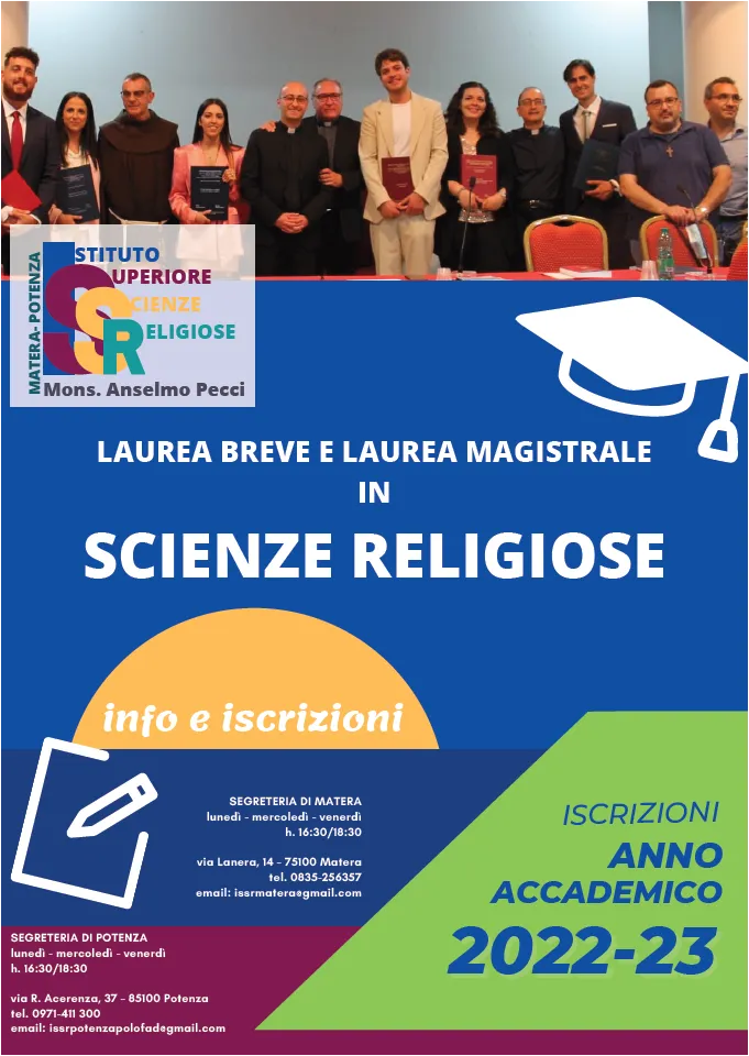 Per informazioni e iscrizioni rivolgersi alla Segreteria dell’Istituto di Matera in via Lanera, 14 il lunedì, mercoledì e venerdì dalle 16.30 alle 18.30. Tel. 0835.256357 – email: issrmatera@gmail.com