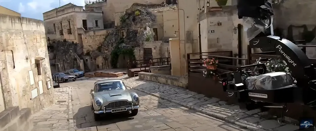 “La cosa bella della sequenza di apertura è che si vede una splendida location. C’è Matera, una città collinare del sud Italia con una storia incredibile. A questo aggiungi l’auto: riportiamo in vita la fantastica e leggendaria DB5”, afferma Chris Corbould, special effects supervisor. “Matera è stata incredibilmente generosa. – prosegue Corbould – Ci ha permesso di chiudere al pubblico tutte le strade”.