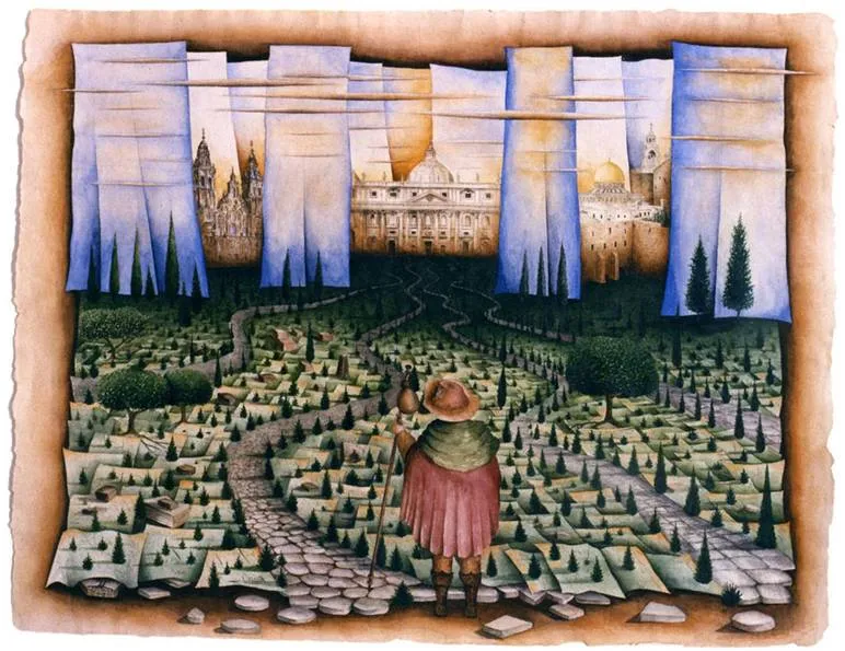 Nei tanti anni di attività artistica, oltre a trattare tematiche di varia natura, ho cercato di mantenere sempre vivo questo collegamento con l’arte sacra. Non mi sono mai lasciato condizionare dalle mode o da altri fattori che oggi distraggono la mente e la profondità dell’animo. Le tematiche bibliche sono state per me un importante arricchimento formativo mi ha donato stimoli creativi straordinari su cui ho prodotto le opere pittoriche più importanti. Non mi sono lasciato trasportare unicamente dalla lettura dei testi sacri ma, da questi, ho fatto tesoro di quei messaggi che fortemente mi donavano emozioni. Mi sono imbattuto su temi complessi come La condizione umana su ispirazione dei pensieri di Sant’Agostino; ho ripercorso e narrato in immagini testi biblici come La Genesi; Il Cantico dei Cantici; L’Apocalisse. Ho dipinto Il Pellegrino, opera del 2000 realizzata in occasione del Giubileo ed ispirato al messaggio di Papa Giovanni Paolo II sui tentativi di avvicinamento delle tre religioni; ed ancora, La Crocifissione; Francesco d’Assisi nel suo ardore di vita