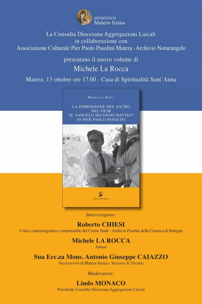 Si è svolta, venerdì 13 ottobre 2023 a Matera nell'Auditorium Sant'Anna, la presentazione del libro di Don Michele La Rocca "La dimensione del sacro nel film Il Vangelo secondo Matteo di Pier Paolo Pasolini". Il video dell'intero convegno. La rassegna fotografica.