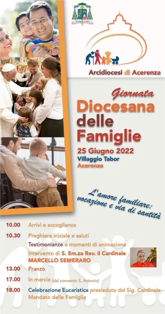 Ed ecco che la santa madre Chiesa mette in atto tappe che rimandino ai valori immutabili della famiglia, dedicando luoghi e tempi alla riflessione, alla preghiera, all’annuncio. Questo e altro ancora farà il X Incontro mondiale delle famiglie in programma a Roma e nelle diocesi dal 22 al 26 giugno 2022. Esso ha come tema: “L’amore familiare: vocazione e via di santità”. Come si evince dalla traccia, vi è una radice, la vocazione alla sanità, e un frutto, l’amore nella famiglia. Tutto parte quindi dalla Grazia del Battesimo sacramentale, prima vocazione alla santità di ciascuno, che diventa dono messo in comune dagli sposi e dai figli per generare Amore (cfr. Deus Caritas est – Benedetto XVI – 2005).
