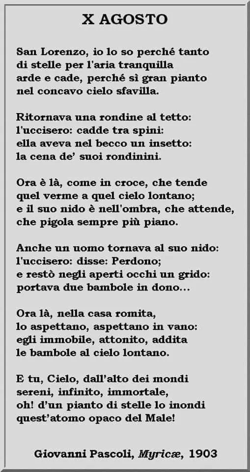 Chi non conosce il celebre esordio della poesia “X Agosto” di Giovanni Pascoli, contenuta nella raccolta Myricae?