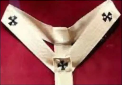 Il pallio degli Arcivescovi Metropoliti, nella sua forma presente, è una stretta fascia di stoffa, di circa cinque centimetri, tessuta in lana bianca, incurvata al centro così da poterlo appoggiare alle spalle sopra la pianeta o casula e con due lembi neri pendenti davanti e dietro, così che – vista sia davanti che dietro – il paramento ricordi la lettera “Y”. È decorato con sei croci nere di seta, una su ogni coda e quattro sull’incurvatura, ed è guarnito, davanti e dietro, con tre spille d’oro e gioielli (acicula).