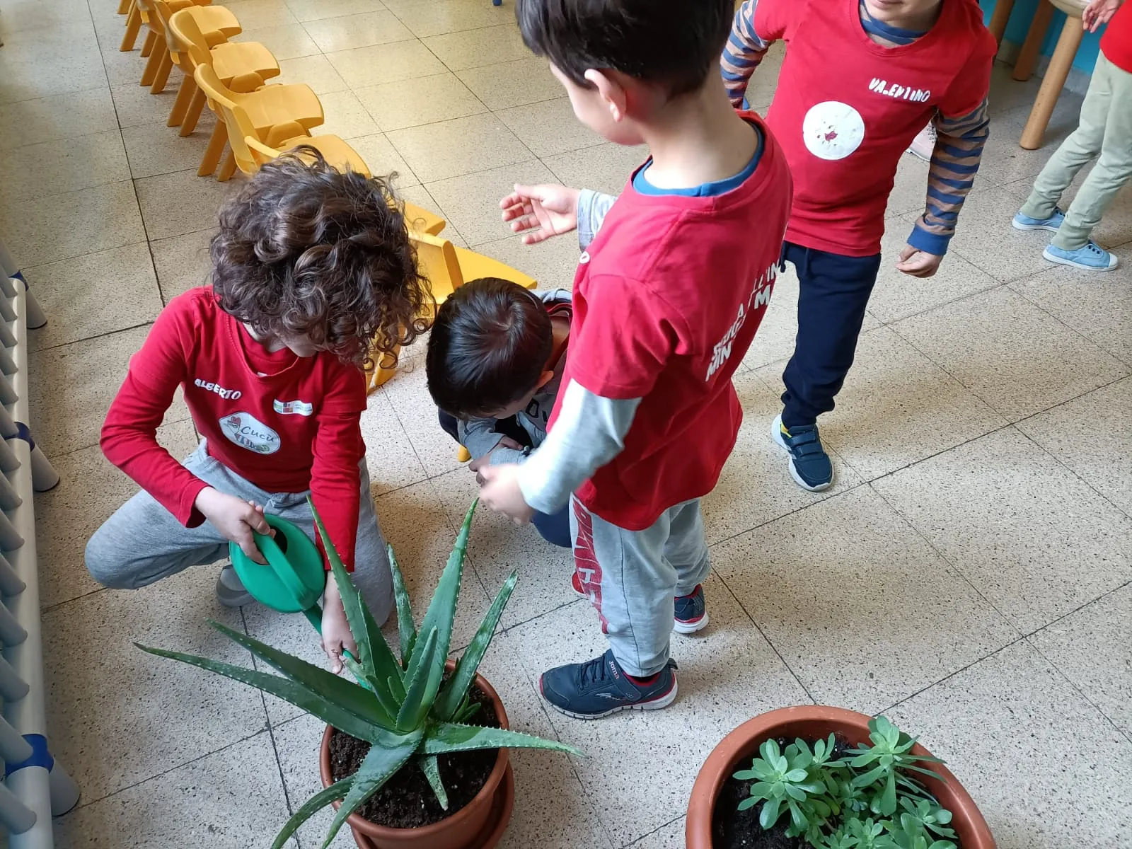 Dell’aula della scuola dell’Infanzia Minozzi Festa adibita a biblioteca, infine, risalta l’attenzione ai dettagli, come le piantine che i bambini hanno messo a dimora e curano sistematicamente.