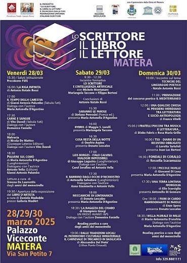 Saranno tre giorni ricchi di incontri, presentazioni letterarie, reading poetici e un focus sull’intelligenza artificiale applicata all’editoria, con la partecipazione di autori provenienti da ogni parte d’Italia. Un weekend per celebrare la parola scritta, tra tradizione e innovazione, con la FUIS e la comunità letteraria di Basilicata.