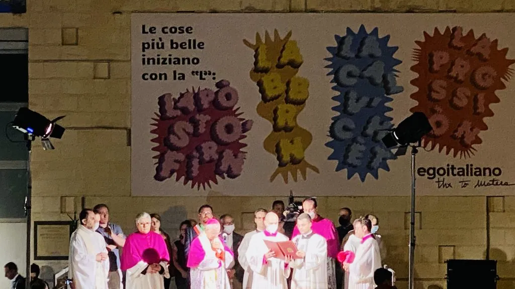“Dobbiamo camminare per le strade della nostra citta riaccendendo la speranza, riaccendendo la fiducia, riaccendendo la comunione e la fraternita di cui abbiamo bisogno. E’ un momento veramente tanto logorato e triste per l’umanità intera quello che stiamo vivendo, soprattutto adesso a causa della guerra. Ma è il momento in cui nel mentre tanti uomini accendono fuochi che distruggono noi stasera da Matera vogliamo lanciare altri tipi di fuochi: vogliamo accendere il fuoco della speranza, il fuoco della giustizia, il fuoco della fraternità. E proprio perché accenderemo questo fuoco lo porteremo per le strade della nostra città e lo diremo al mondo intero perché da Matera parte questo grido, anche in preparazione al prossimo Congresso Eucaristico Nazionale quando l’Italia intera, con tutti i Vescovi i pastori e con il Santo Padre Papa Francesco arriveranno a Matera per dire che da Matera ricomincia ogni cosa perché “Torniamo al gusto del Pane” e il pane di Matera è diventato il simbolo per tutta Italia del Pane eucaristico che è Gesù Cristo. E allora ringraziamo e benediciamo il Signore ed esultiamo insieme tutti quanti. EVVIVA MARIA