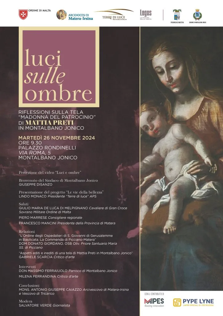 Il convegno si aprirà alle 9,30 con la proiezione del video dal titolo “Luci e Ombre”, prodotto da Logos il giornale online della Diocesi di Matera-Irsina, che guiderà alla scoperta di un’opera caratterizzata da uno straordinario gioco di luci e ombre e da alcuni dettagli pittorici di rilevante interesse storico.