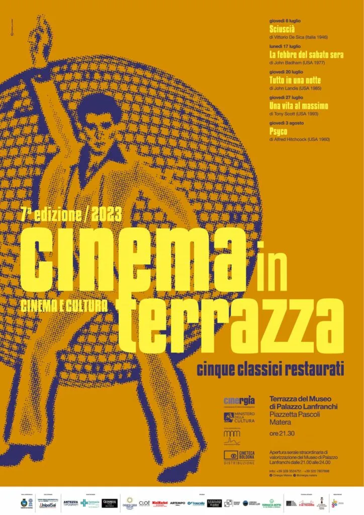 Anche quest’anno cinque appuntamenti con il “Cinema in Terrazza sotto le stelle di Palazzo Lanfranchi”, nati dalla collaborazione tra il Museo Nazionale di Matera e l’associazione Cinergia Matera.