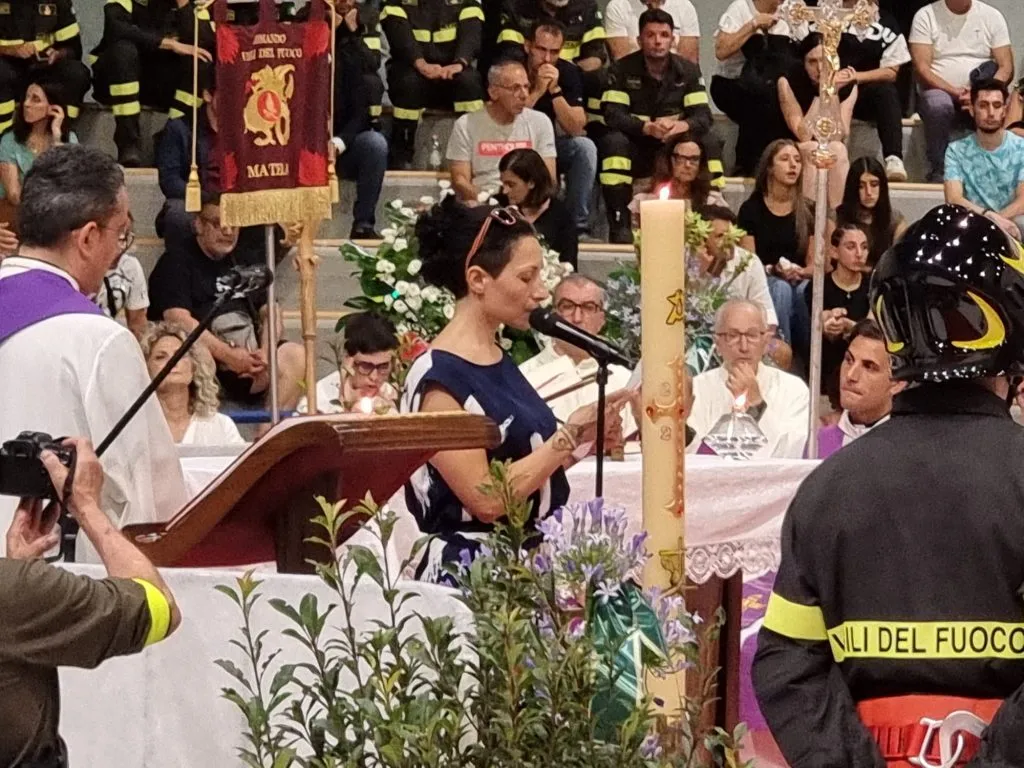 Non meno incisivo il discorso delle Comandante provinciale dei Vigili del fuoco di Matera dei Vigili, Maddalena Lisanti: il primo pensiero alla famiglia e alle vedove a cui toccherà crescere i propri figli “nel ricordo di uomini buoni e valorosi, amati da tutti noi colleghi, papà sempre presenti… quell’afoso pomeriggio del 17 luglio abbiamo sperato che fosse un problema tecnico l’impossibilità di comunicare con i giovani vigili intervenuti nell’incendio a Nova Siri ma poi… la nostra vita è cambiata di colpo. Tutta l’Italia si è stretta intorno a noi: Piantedosi e le alte cariche istituzionali dello Stato da cui è emersa tanta umanità perché uomini e donne che lavorano onestamente. Sono orgogliosa dei ‘miei’ vigili – così mi piace chiamare non solo Nicola e Giuseppe ma tutti quelli della provincia di cui sono comandante – esempio di dedizione al lavoro! Viva Nicola! Viva Giuseppe! Viva i vigili del fuoco”.