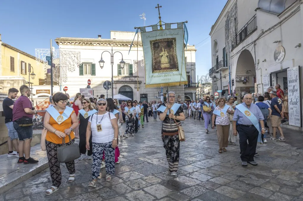 Ore 18:30. S. E. Mons. Antonio Giuseppe Caiazzo, Arcivescovo di Matera-Irsina e Vescovo di Tricarico, è accompagnato dal Concerto bandistico “Città di Matera” dal palazzo arcivescovile alla Chiesa di San Francesco d’Assisi dove, dopo un canto iniziale e l’orazione di colletta della Festa della Visitazione, presiede la processione della sacra immagine di Maria SS. della Bruna attraverso via del Corso e via delle Beccherie.