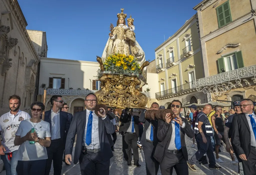 C’è aria di festa in città: nell’aria aleggia la musica della banda, in Cattedrale si odono la Lauda alla Madonna della Bruna e il canto del Magnificat, risuona qua e là la voce di don Francesco Di Marzio, delegato arcivescovile, che di tanto in tanto acclama: “Evviva, Maria!”, non passano inosservati i colori vivaci dei pennacchi dei cavalieri e tanto popolo di Dio si dirige festoso e devoto verso la Cattedrale, pieno di quel senso di appartenenza alla città che ha per protettrice la Madonna della Bruna.