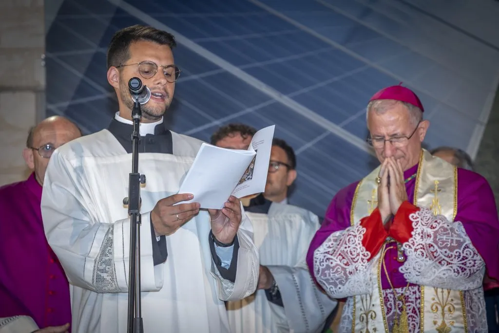 Un bel momento di preghiera in cui il Diacono Don Davide Fusiello ha proclamato il brano dei discepoli di Emmaus, protagonisti dell’edizione 2024 del carro trionfale.