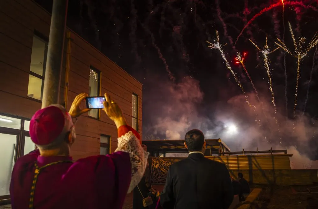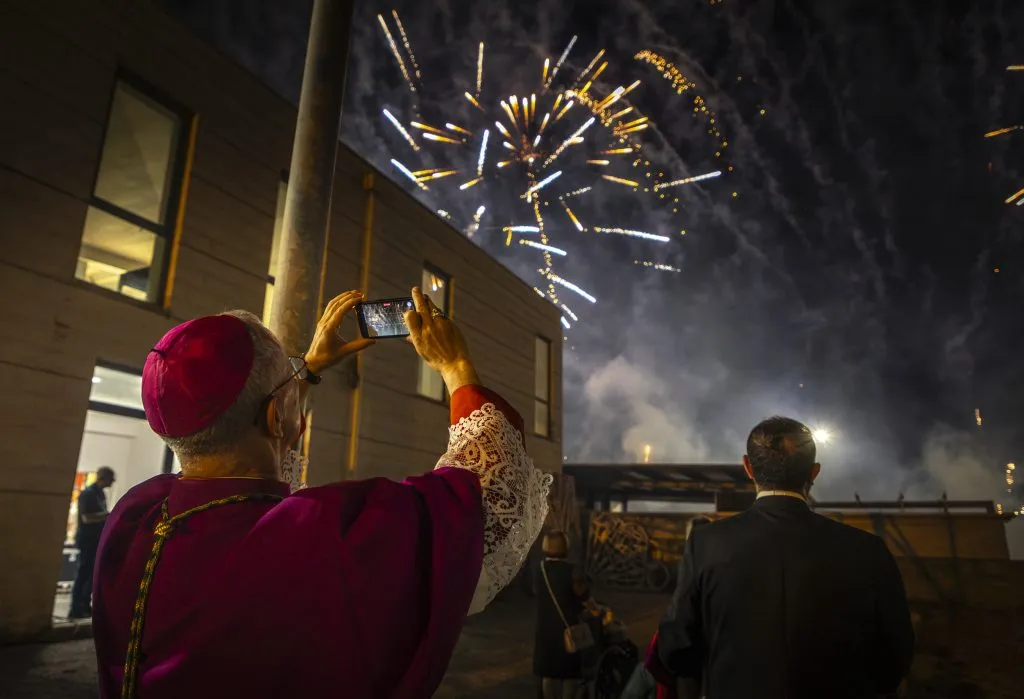 Questo un fuori programma: l’intronizzazione in cattedrale doveva aver luogo, come da tradizione di questi ultimi anni, dopo l’Eucaristia celebrata in Piazza S. Francesco d’Assisi. Ma i lavori ancora in corso hanno imposto questo cambio di programma.