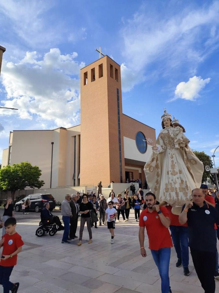 Quindi, in processione per le vie di Marconia abbiamo consegnato la Madonna alla Parrocchia San Gerardo Maiella per donare a tutti gioia e speranza e portare l’annuncio gioioso del vangelo di Gesù.
