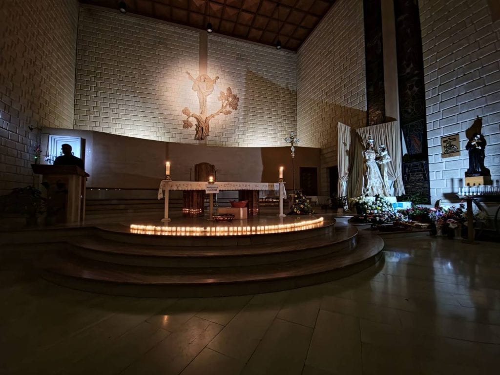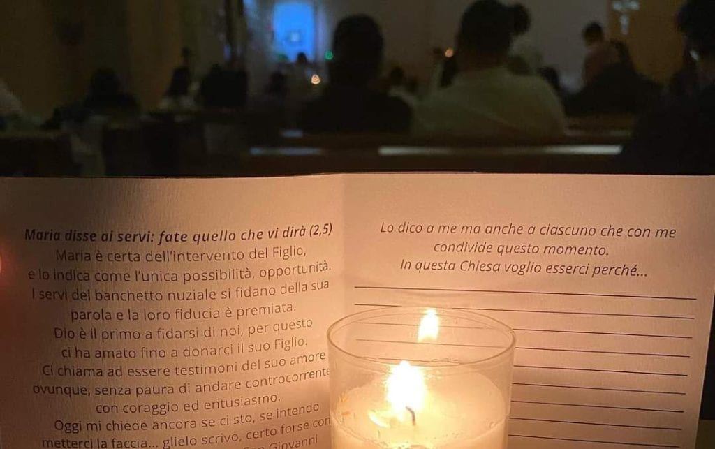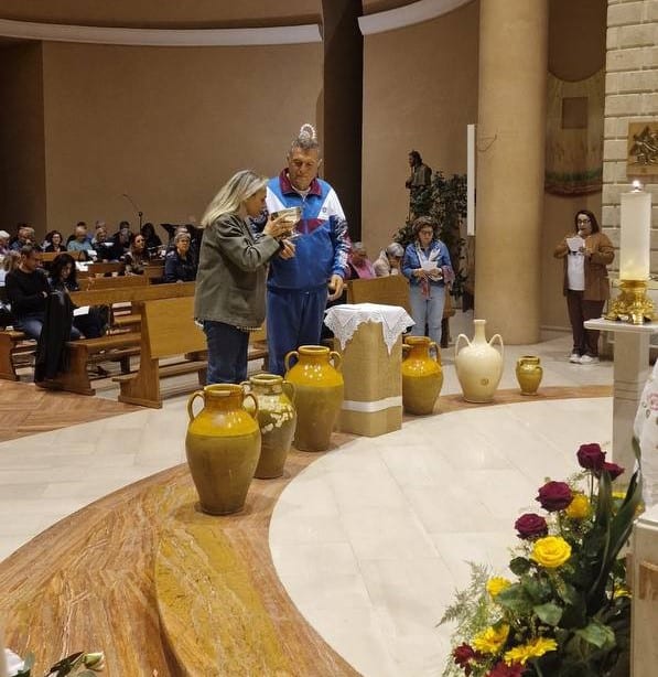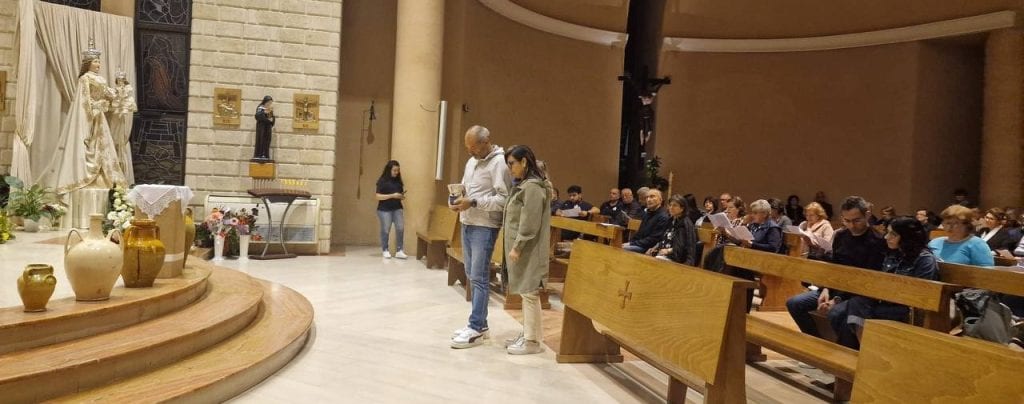 Alle 21, la veglia di preghiera per le famiglie. Una chiesa piena di coppie. Abbiamo meditato il vangelo delle Nozze di Cana. Alla fine della veglia il parroco, don Filippo, ha invitato tutti ad avvicinarsi a Maria e lì è stato bellissimo, perché tutti eravamo uniti e cantavamo “O Maria quanto sei bella”.