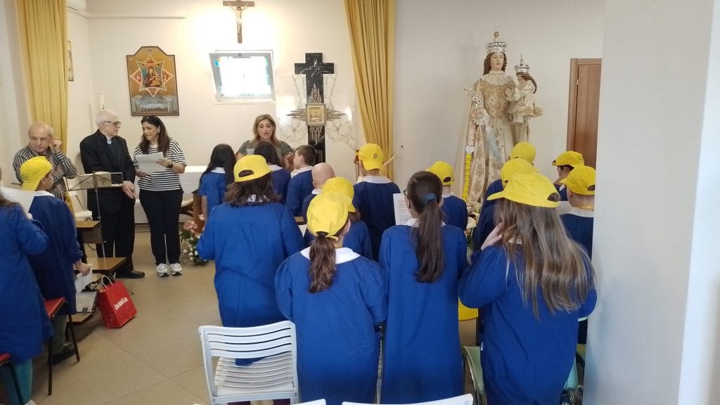 Anche la scuola elementare di via Monreale, presente nel territorio di Marconia, ha voluto omaggiare Maria con canti di gioia quella mattina.