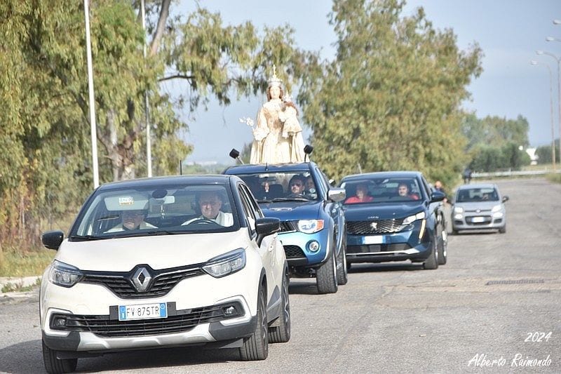 Ecco giungere al bordo di Piazza Elettra un pick-up Suzuki che trasportava la Madonna, preceduta da don Filippo Lombardi, parroco di S. Giovanni Bosco, don Massimiliano Nanna, viceparroco, il Delegato Arcivescovile per la Festa della Bruna, don Francesco Di Marzio, e un paio di ministranti.