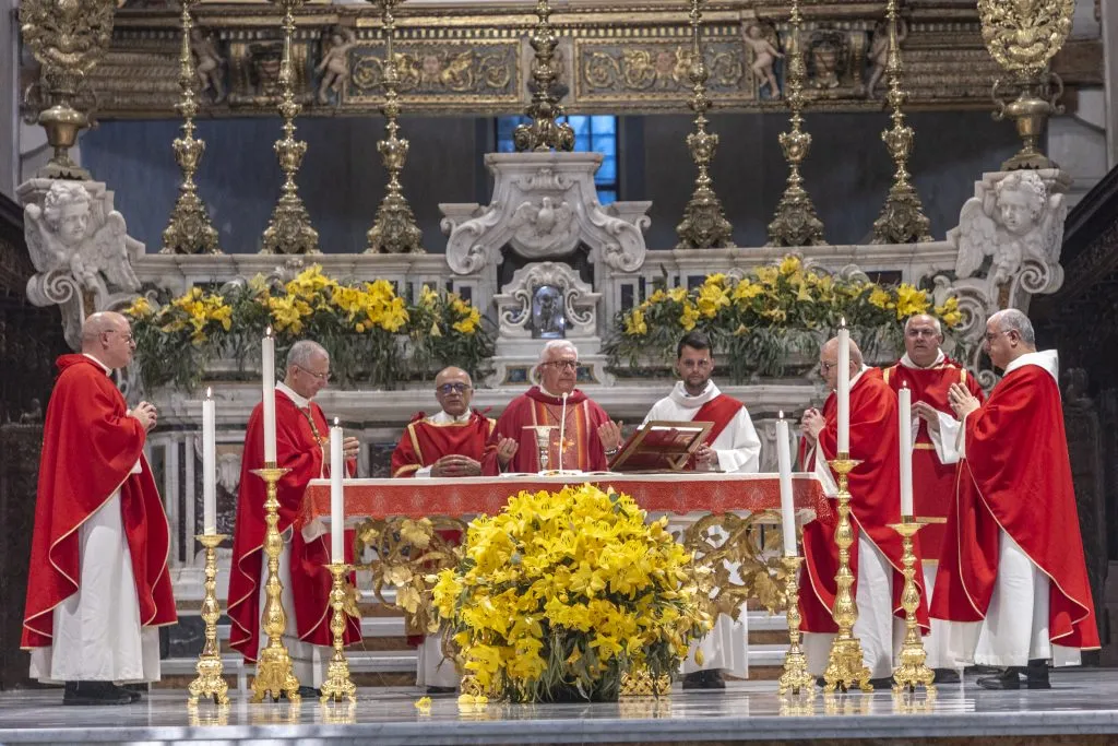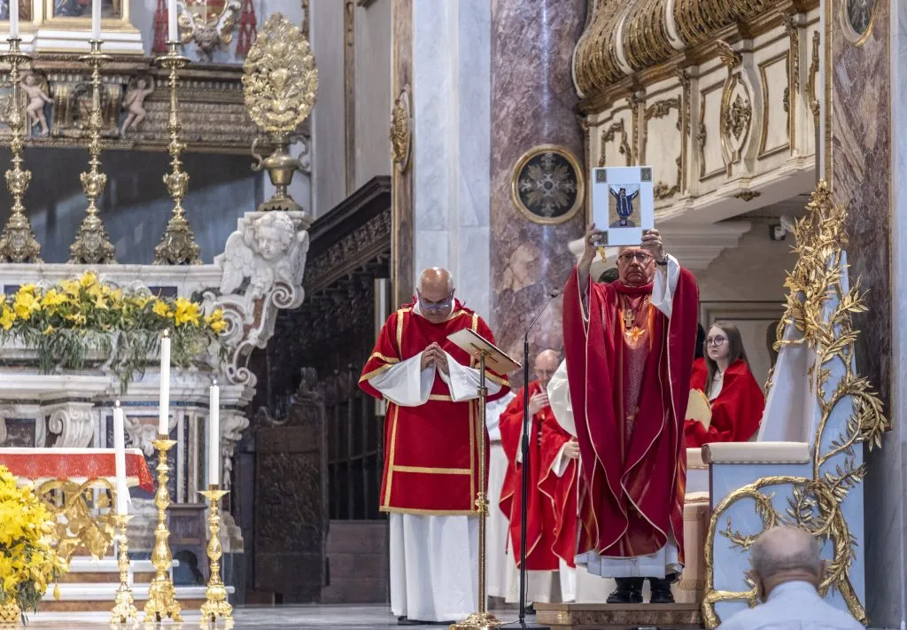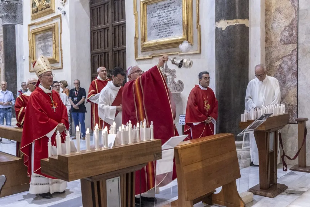 Un richiamo a noi credenti ad amare la Chiesa ha rivolto mons. Ricchiuti nella messa vigiliare dei santi Pietro e Paolo (At 3,1-10; Sal 18, Per tutta la terra si diffonde il loro annuncio; Gal 1,11-20; Gv 21,15-19). “Una Chiesa alle volte divisa in se stessa: forse questo lo scandalo maggiore che possiamo dare”. Ma anche “una Chiesa inascoltata quando denuncia l’assenza di Dio nella società attuale”, ha continuato Ricchiuti. “Una Chiesa che comunque non sa abdicare a quel progetto: fate mie discepole tutte le nazioni”. La “sua” Chiesa, “nostra madre” – sono le parole di Ricchiuti – “che Gesù vuol far capire a Pietro come si ama quando dice: altri ti porteranno domani dove tu non vuoi!”. Ricchiuti racconta, a proposito, l’esperienza di un suo confratello barlettano che in occasione del XXV di sacerdozio, ammalato di sclerosi multipla, disse: “È così che oggi mi viene chiesto di seguire il Signore”. “Una Chiesa in cui far risplendere il volto di Cristo, come Pietro che alla porta bella disse: ‘Non ho né oro e né argento ma quello che ho – Gesù Cristo – te lo do”, così in riferimento alla prima lettura.