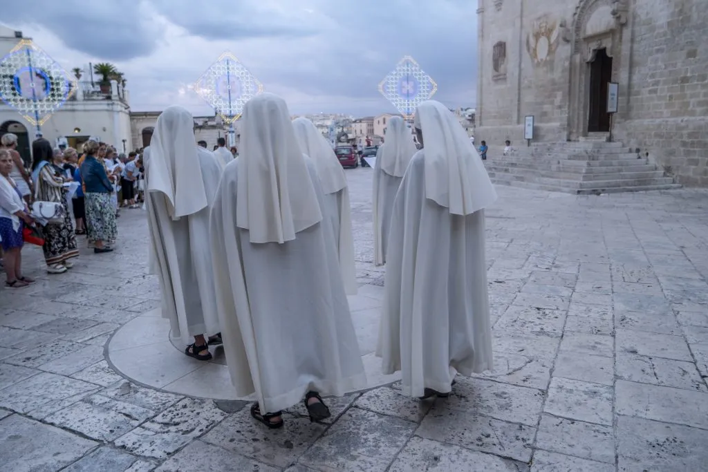 Appena terminata l’Eucaristia, l’esposizione nella cappella del Santissimo Sacramento. Un via vai di turisti e fedeli materani tutto il giorno, chi per una breve sosta in pausa pranzo, chi per un’ora prolungata, sino alle ore 18, quando le Suore Discepole di Gesù Eucaristico – l’istituto religioso fondato a Tricarico da Mons. Raffello Delle Nocche, presenti nella nostra Diocesi a Salandra e nei vicini centri di Grassano, Garaguso e Tricarico – hanno curato una bellissima Adorazione Eucaristica avente per tema “Rimanere accesi”.
