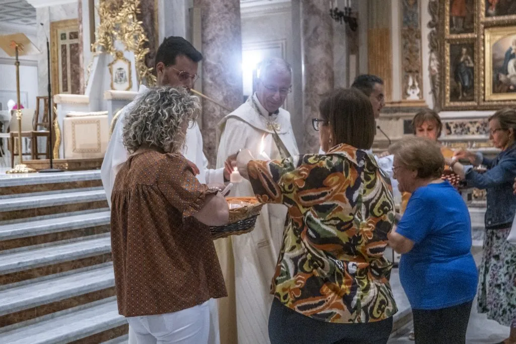L’inizio: una solenne processione delle Discepole di Gesù Eucaristico con le lampade accese attraverso il corridoio centrale della Cattedrale, seguite dall’evangelario e infine dall’ostensorio, accompagnate dal canto “Sono qui a lodarti”, reso ancor più gioioso dal suono della pianola e delle chitarre.