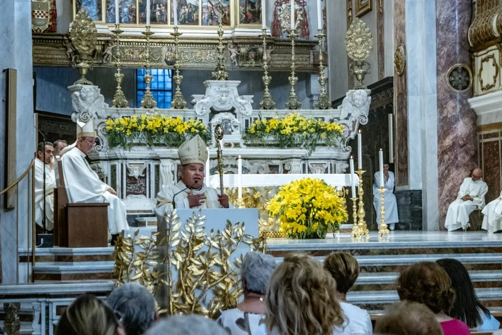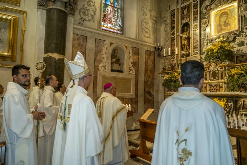 Sennàcherib non rimane impunito. Di qui l’invito ai giovani – puri di cuore – in particolare, “ma per dirlo a tutti in generale” di non cedere alla tentazione illusoria di incarnare chi si prende gioco di Chiesa e Cristiani. Ma di rimanere fedeli alla Parola, che il Vangelo ci presente con l’immagine delle perle, sebbene alle volte possa essere difficile: ecco la metafora della “porta stretta” con cui prosegue il Vangelo, evidenzia Mons. Cascio, attraverso cui ci aiuta a passare Maria, “porta del Cielo”.
