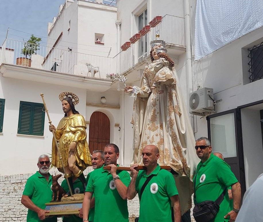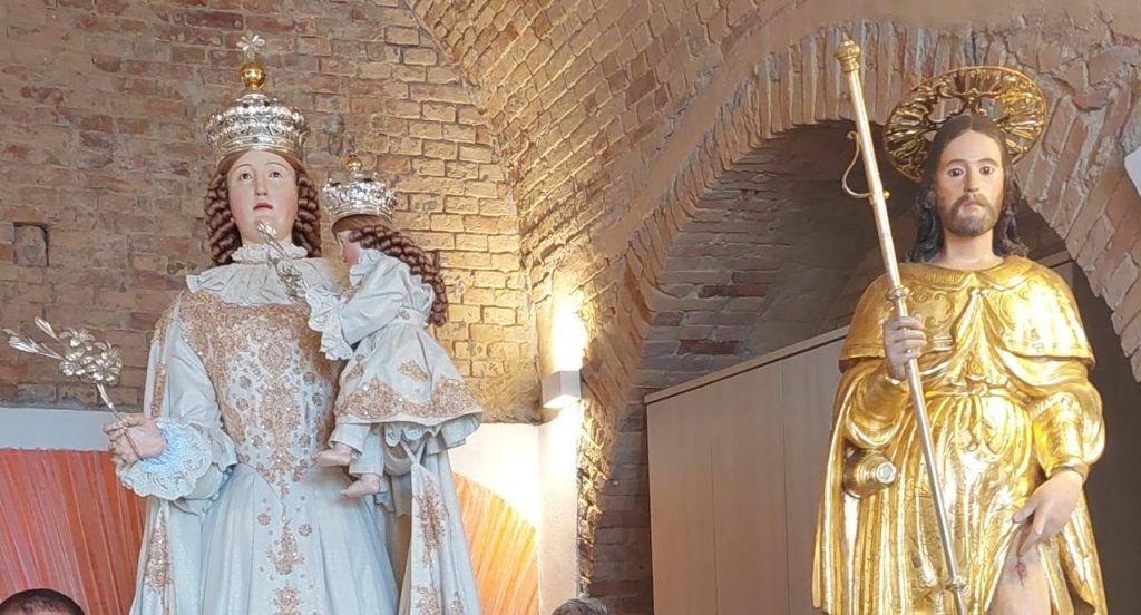 Nel tragitto, la Madonna ha fatto sosta nella cappella del Santo Patrono, San Rocco, che per l’occasione è stato fatto uscire dalla Cappella. Un’emozione molto forte ha destato l’incontro tra la Madonna della Bruna e San Rocco: Patrona della diocesi da un lato e Santo Patrono della nostra comunità dall’altro. Il vivo auspicio che la loro umiltà e il loro coraggio possano accompagnare ognuno dei presenti nel cammino della vita.