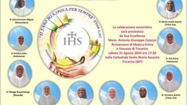 Oggi, 31 agosto, alle ore 18,00 presso Cattedrale di Tricarico, mons. Antonio Giuseppe Caiazzo, arcivescovo di Matera-Irsina e vescovo di Tricarico, presiederà la...