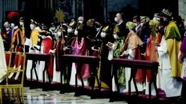 Santa Messa nella solennità di Maria SS.ma Madre di Dio LV Giornata Mondiale della pace, Basilica di San Pietro, sabato 1 gennaio 2021. I pastori trovano «Maria e...