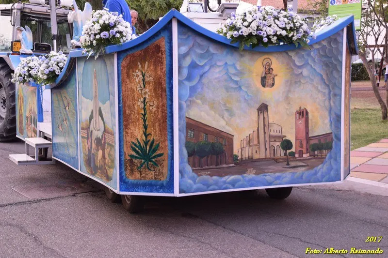 Otto artisti hanno partecipato immaginando il Carro decorato con pannelli che sviluppano il tema della festa: “Maria e la Chiesa, scrigno di bellezza. Icona evangelica: i discepoli di Emmaus (Lc 24,13-35)”.