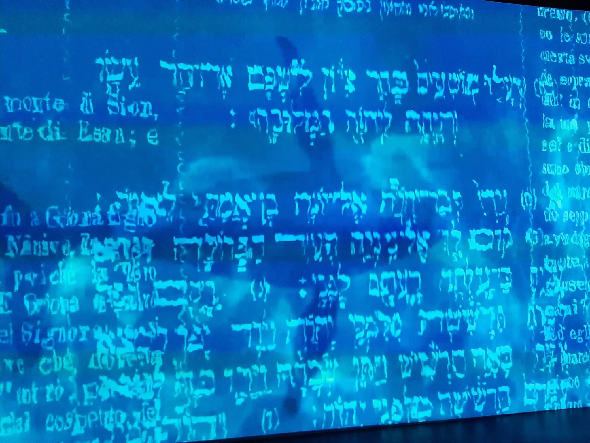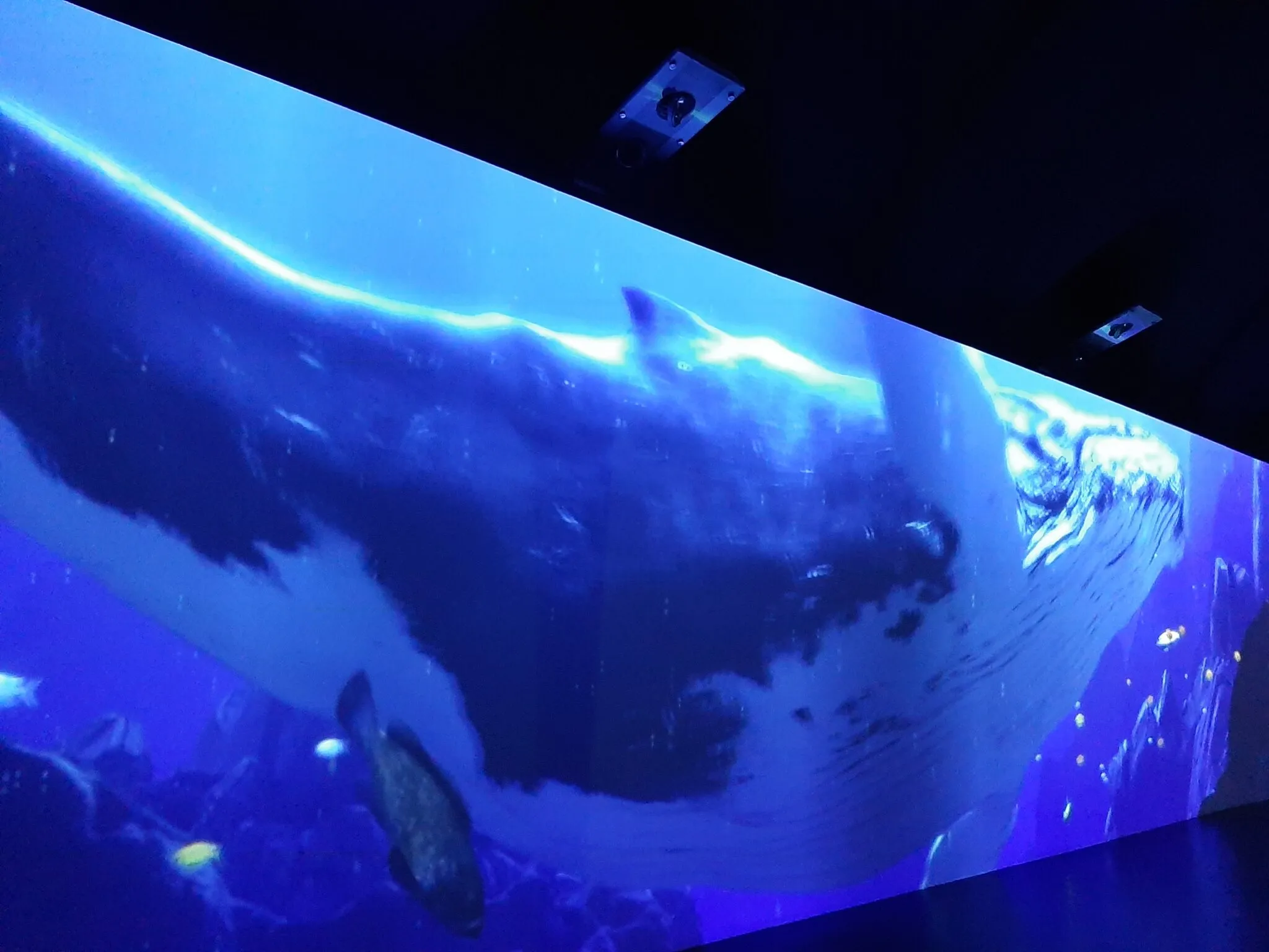 Nella seconda sala, la più suggestiva che incanta grandi e piccini, il visitatore è accompagnato in un viaggio di grande impatto visivo attraverso una videoinstallazione immersiva ideata dal visual artist Silvio Giordano e realizzata da ETT SpA, azienda del Gruppo SCAI. Al fine di creare un flusso emotivo dinamico, le varie sezioni che compongono il filmato sono state realizzate utilizzando tecniche differenti, dall’animazione 2D al 3D fotorealistico, passando per il compositing, le riprese video live e la motion graphic. Alle riprese reali da drone, inoltre, si affiancano parti prevalentemente documentaristiche. La sala è caratterizzata dalla presenza di una proiezione immersiva su due lati che si attiva all’ingresso del visitatore, rendendo l’esperienza coinvolgente grazie anche alla grande parete specchiata. Un ruolo estremamente importante rivestono il suono e le musiche, che accompagnano lo spettatore in una dimensione acquatica. Alla voce del narratore Christian Iansante è affidato il racconto della vita marina, dalla genesi fino alla caccia violenta alla balena che, in tutta la letteratura, da Moby Dick a Giona della Bibbia, rappresenta una tappa verso la salvezza, recando con sé la possibilità del rinnovamento.