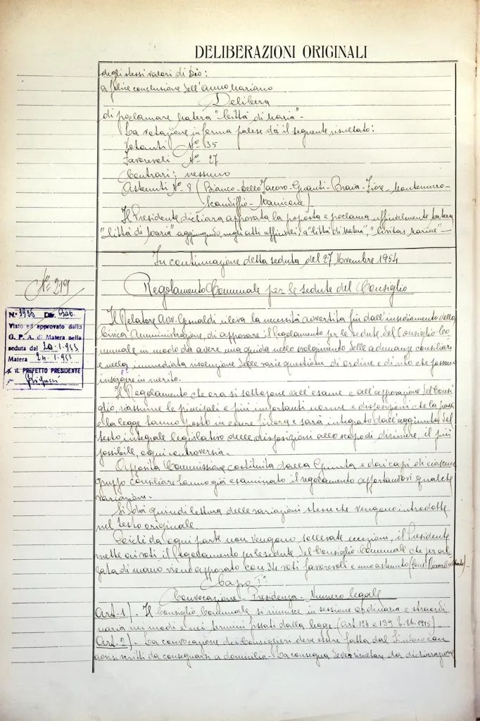 Verbale seduta consiglio Comunale “in continuazione della seduta del 27/11/54”